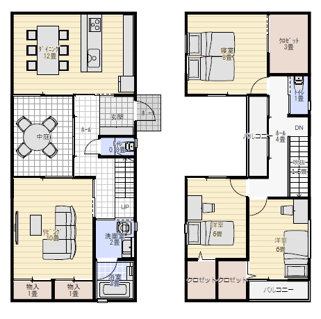 中庭のある家の間取り