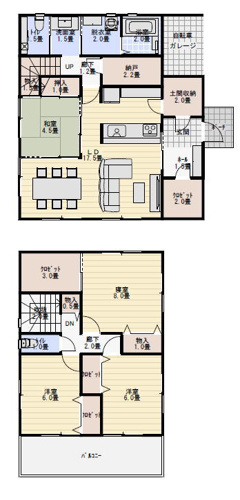 この間取りの特徴は自転車のビルトインガレージがあること。