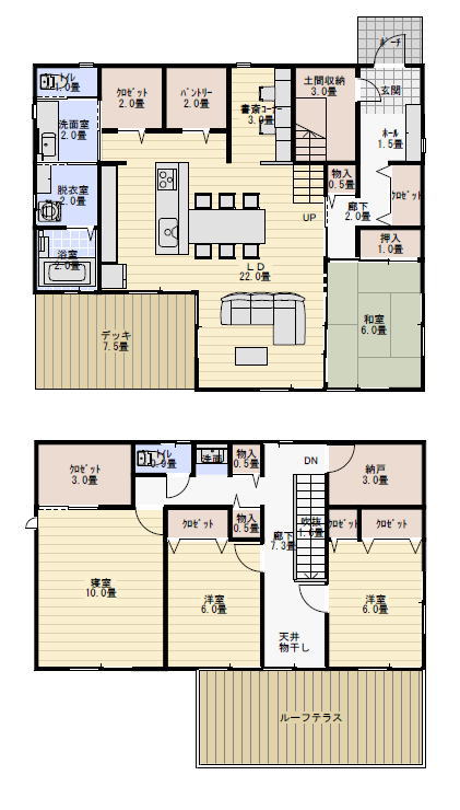 間取りはLDK を中心に家の各所にすぐ行けるというのが特徴になります。